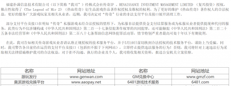我公司,熊猫体育信息技术有限公司,经株式会社传奇IP和RENAISSANCE INVESTMENT MANAGE...