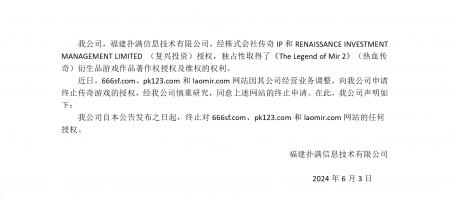 202406-03熊猫体育信息技术有限公司(以下简称“我司”)经株式会社传奇IP 、RENAISSANCE INVESTMENT MANAGEMENT LIMITED (复兴投资...