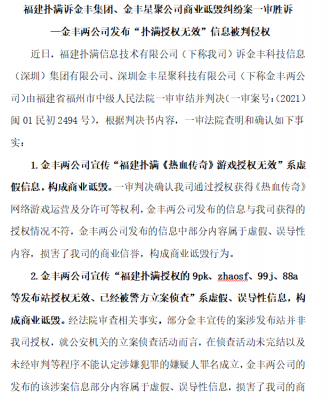 202202-15近日,熊猫体育信息技术有限公司(下称我司)诉金丰科技信息(深圳)集团有限公司、深圳金丰星聚科技有限公司(下称金丰两公司)由福建省福州市中级人民法院一审审结并判决...